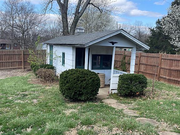 Atrium doors off of dining area lead to a large, covered back porch with a swing, a patio, and a large , privacy-fenced yard with an outbuilding