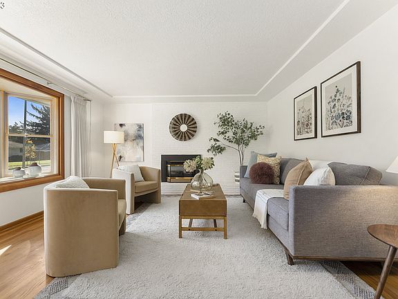 Wonderful Ranch Rambler on a fantastic oversized and landscaped lot. This well-maintained home in an established neighborhood offers so many perks. The living room has pretty hardwood floors, a bay window and a brick fireplace. There are updated windows throughout and a very nice elevator for ease of accessibility. The formal dining room has wood framed sliding glass doors that overlook the patio and tree framed private back yard. There is also a lovely breakfast nook with a bay window for casual dining off the roomy kitchen. The kitchen has abundant cabinetry. There are four bedrooms on the main, including a primary bedroom with a private half bath. Lovely hardwoods throughout the main floor. Plenty of storage in both the laundry room and the oversized garage. All of the living spaces offer generous sizes and there is both a formal living room and a casual family room - both with brick fireplaces. The outdoor space is well defined by a treed lot and has a grassy lawn, perimeter landscaping and a watering system for easy care. This bright and cheerful property is an excellent choice for your next home. [Home Energy Score = 4. HES Report at https://rpt.greenbuildingregistry.com/hes/OR10222695]