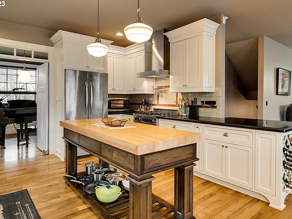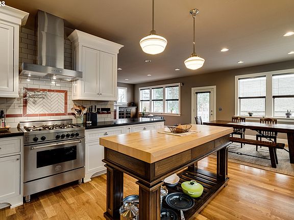This beautiful home is filled with high end finishes and timeless craftsman style. Refinished hardwood floors flow underfoot through the main level to the living room where built-in cabinets surround the central gas fireplace. You will also discover: Rejuvenation light fixtures; wiring for surround sound system; moulding lighting in the kitchen, dining and primary bedroom; laundry room located on same floor as the three upper floor bedrooms; tankless water heater; and custom window treatments. A wall of windows fills the open concept living area, informal dining and kitchen with natural light and brightens the space, which is perfect for entertaining. The gourmet kitchen houses high end appliances and fixtures, with tons of counter space and storage, as well as a central island, while the attached room is a versatile space ideal for formal dining. Upstairs are three bedrooms and two full bathrooms including a large primary suite with walk-in closet and attached full bathroom featuring dual sinks, soaking tub, and dual-head shower. The lower level houses the fourth bedroom/bonus room which is perfectly set up to serve as your media haven. There is also a large lower floor storage room. The two car tandem garage is wired for 240v car charger and has a Wifi controlled garage door.Outside the home you will find: outdoor hot water, Wifi controlled sprinkler system; and plumbing for natural gas grill. The perfectly sized backyard sets up well for private gatherings, gardening and taking time to relax and enjoy the trees. Ideally located minutes to Alberta Arts shopping and dining, and situated on a Portland city bike street. [Home Energy Score = 8. HES Report at https://rpt.greenbuildingregistry.com/hes/OR10213824]