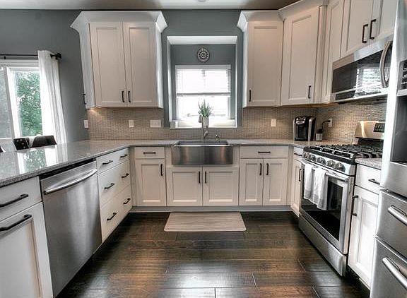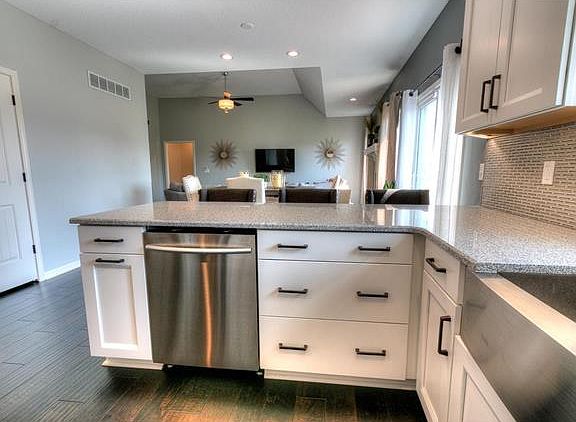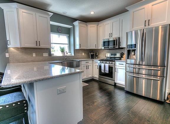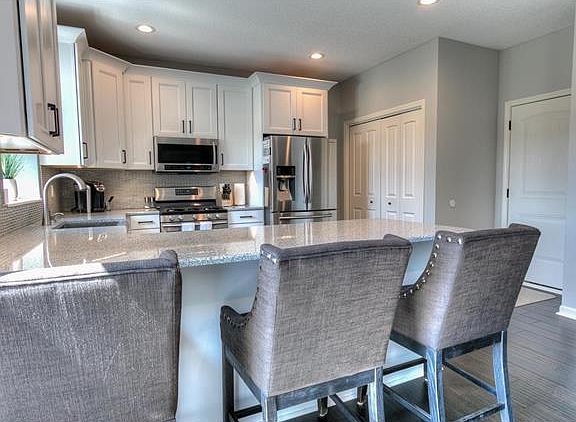 Gorgeous true ranch! Greeted by vaulted ceilings and an extended foyer. Living room complete w/ wood floors, vaulted ceilings, fireplace, and updated fixtures. Dining room open to main living area and kitchen. Kitchen complete with custom soft close cabinets, granite counter tops, breakfast bar, deep farm sink, mosaic tile back splash, over-sized gas range, & stainless steel appliances. Walk out to deck overlooking pond area. Main floor master en-suite w/ vaulted ceilings, dual vanities, walk-in closet, jacuzzi...