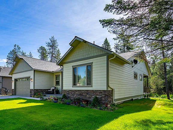 Come live in this beautiful open floor plan, right on the edge of town in a beautiful neighborhood. This barely lived in home was built in 2019, with beautiful finishes that include, gas fireplace, tile shower, tile & engineered wood floors, forced air natural gas heating system. Vaulted ceilings in the living & dining rooms w/ 9 foot ceilings through out the rest of the home. Full stainless steel appliances with beautiful granite, counter tops. Master bedroom w/two walk-in closets, master bath w/ Chromotherapy air jetted tub, double sinks & linen closet. Kitchen is open to living & dining room, pantry, island breakfast bar. Property is next to the Sandpoint-Dover Trail to walk or ride your bike around town. Covered deck, two car garage, laundry room, Landscaped, w/mature trees.