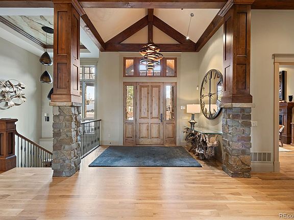 Tranquility, privacy, and luxury converge in this breathtaking mountain contemporary ranch in the coveted Village at Castle Pines community. Perfectly positioned on a lush, .75-acre cul-de-sac lot with gorgeous golf course views behind, this 5 bed | 7 bath masterpiece offers beautifully refined living and entertaining space at its finest. The floor plan is elegant and expansive: designed to impress and inspire at every turn. On entry, you'll step into a stunning great room with soaring ceilings, an enormous gas fireplace with floor-to-ceiling stone surround, wide open dining and gathering areas, and outdoor access to a sprawling, covered outdoor deck. The gourmet kitchen is outfitted with Wolf appliances including a 60” gas range, double ovens, 2 dishwashers, a massive center island, and bright breakfast nook. In addition, the main level includes a richly appointed office, climate-controlled wine cellar with rich wood finishes, 2 powder rooms, a large laundry room, and a show-stopping primary suite walking out to the deck with a spa-inspired bath and custom closet. The finished walk-out lower level is an entertainer’s daydream with an open media room, wet bar with island seating, gaming area, dining space, and 4 additional bedrooms, each with an en-suite bath. One bedroom currently used as a home gym has a spa with a dry sauna for the ultimate in-home relaxation spot. Outdoors, the private sanctuary impresses beyond belief with a Designs By Sundown professionally created back yard complete with a cascading waterfall, fire pit, boulder wall with perennial plants, and multiple seating areas across the upper and lower decks. Additional highlights include a 4-car finished garage, 6 fireplaces, home theater system, and access to all Village amenities— pools, tennis, pickleball, fitness, trails and 2 of the best private golf clubs in the country. Simply put, if you're looking for a true luxury retreat in one of Colorado’s most exclusive communities, you've found it.