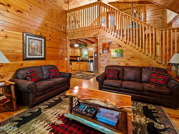This 3-bedroom, 2-bathroom log cabin in Gatlinburg offers an excellent opportunity for investors seeking a high-performing short-term rental (STR) property. Located just 15 minutes from downtown Gatlinburg, the cabin's 2,200+ square feet are spread over three levels, maximizing its rental potential without the challenge of a steep lot. The main level features a fully equipped kitchen, a living room with cathedral ceilings, a gas fireplace, and a master bedroom with a king-size bed, soaking tub, and private access to a screened porch with a hot tub and seating area. These features enhance guest appeal and ensure repeat bookings. The upper loft area can accommodate additional guests or serve as a versatile gaming space, adding to its marketability. The lower level is designed for entertainment with a recreation room, pool table, bar seating, and two additional bedrooms, including one with a private gas fireplace. A second full bathroom on this level increases the cabin's rental capacity. This property has been self-managed for six years, consistently earning 5-star reviews, demonstrating its established rental income potential. For investors looking to expand their portfolio, this cabin provides a turnkey solution with strong market demand, privacy, and desirable amenities in a high-traffic tourist area.