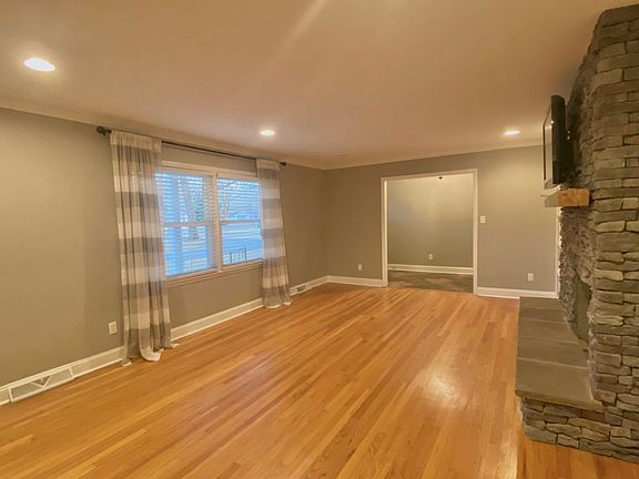 4 bedroom home located .2 mile from RE Lee and .4 mile from East Middle. This spacious ranch style home was built in the 1960's but renovated in 2016. It sits on approx 1 acre with a large, fenced back yard, detached garages, covered patio and circle drive. Inside, there are 2 separate living rooms, each with stone-covered fireplaces. Back living room (den) has french doors to covered patio. Original hardwood thru much of the home. Both bathrooms and kitchen were completely remodeled and most windows replaced. HVAC unit was replaced in 2023. New carpet in den, master bedroom and one guest bedroom.
