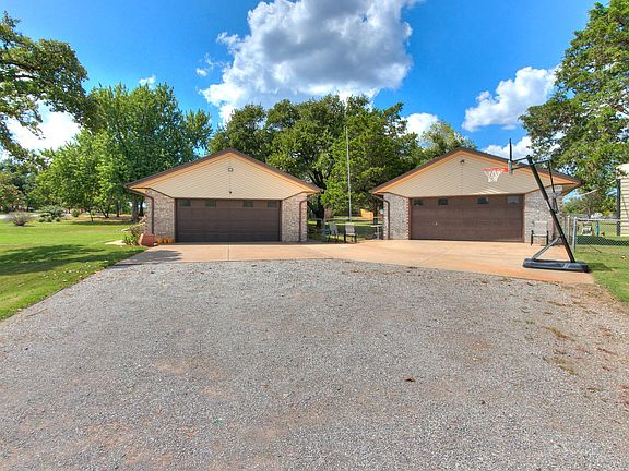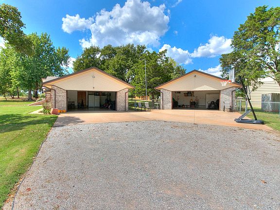 RARE FIND! 4 bed, 2.5 bath, 4 car garage home on .768 acre corner lot, in Edmond North School District. Fully fenced backyard with mature trees, irrigation & well water for yard and home. Foyer is level with the 4 bed and 2 baths on left, to the right are 4 steps down to the rest of the home. Large living room has cathedral ceilings with beams, fireplace, built-in shelves and great views. Galley kitchen has breakfast bar, pantry cabinet, microwave & large dining area. Spacious primary bedroom has 2 closets and en-suite bathroom. Two of the additional bedrooms have walk-in closets. Laundry area and bathroom are located between kitchen & attached 25D x 24W 2 car garage. Workshop/Detached 23D x 24W 2 car garage has a new natural gas heater 2021, window AC unit and a new, 6'x8' Above Ground Storm Shelter. RV shed is 41D x 25.5W, available to rent separately and has it's own driveway, electric and water hook ups, for boat, vehicle or RV storage. Owners are REALTORS. Minimum 1 year lease. Renters are responsible for electric, gas, (internet and cable, if desired), lawn and landscape maintenance (riding mower provided). Water for home and lawn is from a well and we have a softener system. Renters to provide own washer, dryer and refrigerator. NO SMOKING. Pets may be approved on a case by case basis and will require a $300 non-refundable pet deposit per approved pet. RV Parking area can be rented for an additional fee to store RV, vehicles or boat(s).