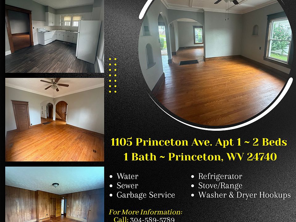 1105 Princeton Ave. Apt 1 ~ 2 Beds 1 Bath ~ Princeton, WV 24740 RENTAL ONLY: Security Deposit: $750. Can be made in payments if needed. Monthly payment: $750/month includes water, sewer, trash service, and lawn-care. Resident is responsible for electric. If you are looking for space This large 2 bedroom, 1 bathroom downstairs apartment is what you are looking for! Only one apartment upstairs. Oversize bedrooms, large living room, formal dining room and large kitchen with separate laundry area with storage cabinets & washer and dryer hook ups. Monthly rent includes water, sewer and weekly curbside trash pick up. Located within walking distance to Stafford Drive, shopping, restaurants, and much more! Hardwood flooring throughout for easy cleanup. Double pane windows that help with the electric bill. Electric heat. Furnished with a stove and refrigerator. An abundance of kitchen cabinets and countertop space. Mailbox by front door for easy daily mail delivery. Small covered front porch. Flat backyard. All one level. Move in today! Christian Management Corporation Office Hours: Mon-Fri 9:00AM-5:00PM & 10:00AM-2:00PM the 1st Saturday of every month You can view THIS property 7 days a week! Most pets welcome with a $300.00 pet fee per pet and signed pet agreement. Maximum 2 pets. No aggressive breeds due to insurance restrictions. Clean, safe, quiet, crime & drug-free are our priorities for our residents! We support Equal-Housing Opportunities! Good people with good, bad, low, or no credit but stable employment or Social Security are welcome. -MUST pass background check -NO evictions in the last 7 years -NO sex offenders Is this property not what you are looking for? View our other available #homes, #mobilehomes, #apartments, and more on our Facebook or our website!