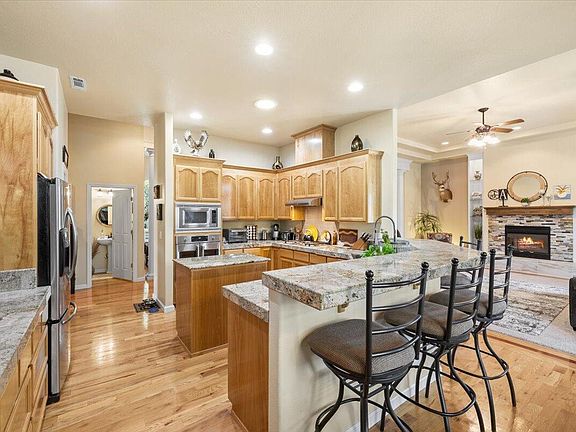 Welcome to your dream home in the prestigious Eagle Point Golf Course Community! This 4-bedroom, 3-bathroom home offers 2,923 sq. ft. of luxurious living space with thoughtful updates throughout. Enjoy a remodeled tile fireplace with a unique wood mantle, large picture windows with remote-controlled blinds, and new wood valances. The gourmet kitchen boasts granite countertops, a new sink and faucet, a gas range, and a stunning tile backsplash (all updated in 2022).