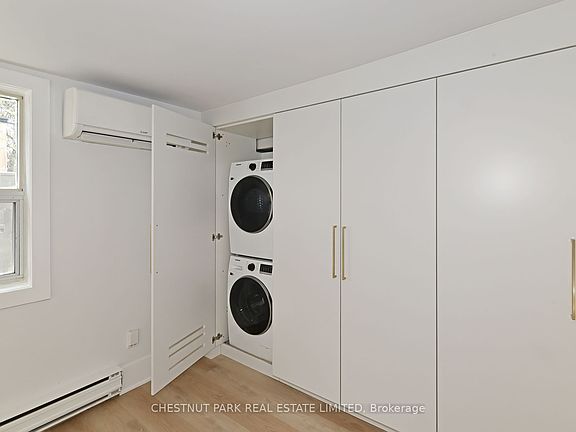 Be the first to call this fully renovated, two-bedroom suite home. Spanning the entire third floor, this bright and spacious unit features two generously sized bedrooms, each with ample closet space and a window and ensuite laundry. The tastefully designed kitchen offers stainless steel appliances. The large living room has wall to wall closet and has a walk out to a private, south-facing terrace- perfect for morning coffee or evening relaxation. A stylishly designed 4 pc bathroom completes the interior. Parking for one car is included in the lease and is off the laneway. Located in the heart of Leslieville, one of Toronto's most sought-after neighbourhoods, with the TTC streetcar just steps from your door. Tenant pays cost of Hydro, and Cable/internet.