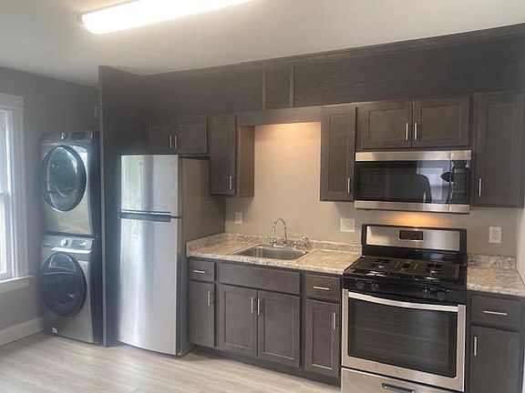 Impressive, newly renovated first-floor one-bedroom apartment available for lease on August 1st at 1105 Rutger St. Located minutes away from Proctor Park, Old School, and MVCC in a great neighborhood, this apartment receives a ton of natural light during the day. There are several notable features, including original hardwood floors that have been refinished and cleaned, a windowed-in porch entrance, in-unit Samsung washer/dryer combo, and a brand-new kitchen: modern grey kitchen cabinets, matching stainless-steel and black appliances including an OTR microwave. The bathroom features an easy to clean one-piece white shower unit with a new Delta shower head, new toilet, and new bathroom vanity with a mirror. Other features include a new matching grey floor in the kitchen and bathroom, ceiling fans in the living room and bedroom, two closets in the bedroom, and a central surveillance system for security. A free storage unit located in the basement will be provided for your use. Heat and water are included in the rent. Tenant pays electric. There is one garage stall available for parking/additional storage for an extra $75/month first come, first serve. Parking in the driveway is free with a designated parking spot. Pet's considered on a case by case basis, no smoking. Will perform background checks on all applicants.