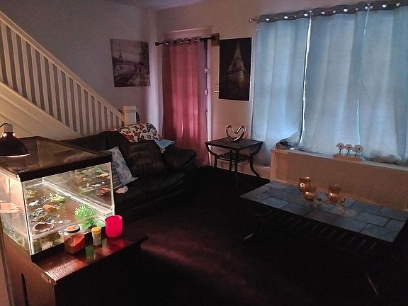 Enjoy this one of a kind home. Spacious walk-in closets, two full size bathrooms with showers, 2 car private driveway, first floor laundry room ; heat lamp in large walk-in shower in 1st floor bathroom , new hot water tank, electric baseboard heating, some hardwood flooring and some wall to wall carpeting (Living room, Dining room, Middle bedroom ,Master bedroom, Dining room), new porch roof, shingled asphalt main , roof, large fenced rear yard for your family cookouts, some new vinyl windows. There is also a wheel chair accessible ramp at the rear entrance. A 10x12 storage shed in the rear yard. Convenient public transportation. Laundry room can be converted to a 4th 1st floor bedroom with attached private bathroom. Ceiling fans in rear bedroom, living room and laundry room/possible fourth bedroom