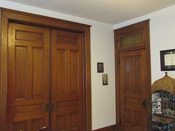 Wonderful historic 2 story home with beautiful woodworking details throughout. Pocket doors, ornate fireplace has been capped. Wood burning stove in family room works great. Covered side porch & deck for BBQ's or just sitting back and enjoying listening to the birds. Kitchen has plenty of storage in original cabinetry that makes this home so charming. Central air installed 2017 for the upstairs, security system is available and conveys (no cameras). Driveway parking can hold up to 6 cars, garage is drive-in basement. Two pipes on steam heat system are to be repaired before or credited at close. Plenty of space and storage waiting for you, don't miss it.