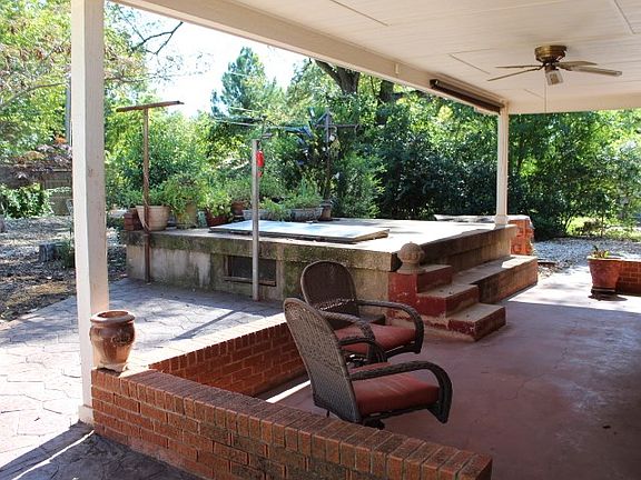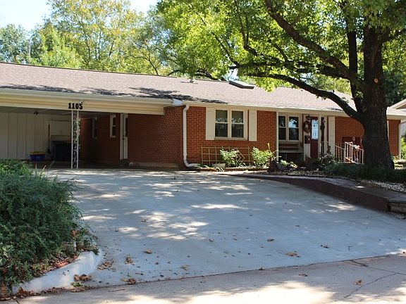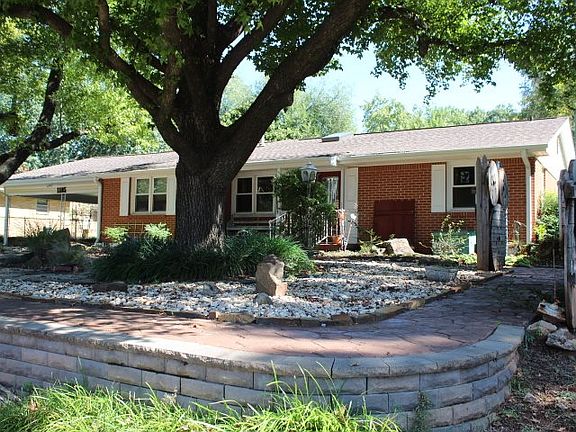 Great location, Brick 3 bedroom 1 1/2 bath with so many updates. Roof replaced in 2010, New vinyl tilt out windows for easy cleaning, new exterior patio door with pull out screen door, new paint with added skylight for natural lighting in living room, Gas tankless water heater, extra insulation added for more energy efficiency, sewer line from house to main replaced, full house water softner, real wood flooring, new HVAC system replaced 2014, new driveway, stained stamp concrete patio/walkway around the beautifully landscaped yard. This home has a storm cellar, out buildings and a covered back patio not to mention the mature trees shading the front yard. The home also has an oversized covered patio that could easily be enclosed to make a two car garage. On the back side of the carport is a 19 X 8 foot detached building that could easily be used for an office/hobby room or just extra storage. The ceiling over the carport is floored and is also great for storage. Security system with no monthly charges besides just needing the internet. All patio furniture and landscaping included.
