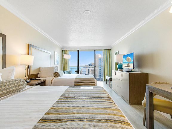 Furnished ocean view efficiency at Coral Beach with recently installed LVP flooring and FULL kitchen that includes granite countertops, updated cabinetry, an oven, and a microwave. This 11th floor unit generated GREAT rental numbers last year. There are plenty of on-site amenities at Coral Beach. This includes an on-site restaurant, indoor and outdoor pools, hot tubs, Coral Bean Cafe, fitness center, business center, and gift shop. Coral Beach also features an on-site entertainment center that includes a bowling alley, concessions, and lots of arcade games. Come by and enjoy the ocean views from this condo today!
