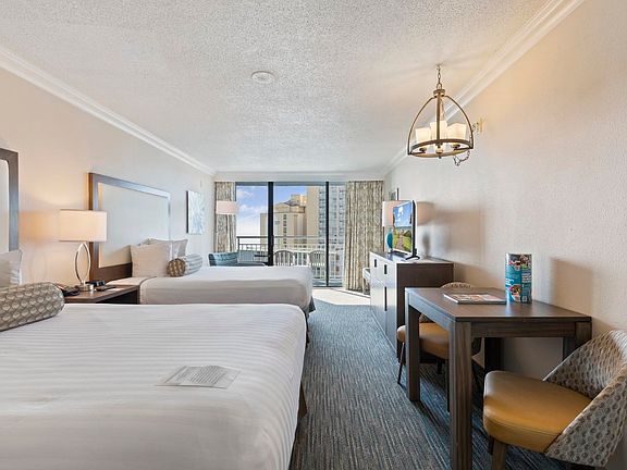 Coral Beach Resort! 7th floor unit in top condition with beautiful oceanviews. Upgrades include 2 queen sized beds, bedding, drapes, carpeting, paint, light fixtures, full sized appliances, granite countertops in both the kitchen and bathroom. Relax on your private balcony and enjoy the stunning oceanview. Coral Beach Resort named Best Family Resort by Travel Channel with more on-site amenities and activities than any other Myrtle Beach resort. Featuring all the amenities you would want including lazy river, indoor and outdoor pools, indoor/outdoor jacuzzis, sun deck, kiddie water park, fitness room, arcade, pool tables, bowling alley, indoor/outdoor bars and restaurants, Coral Bean Cafe selling Starbucks coffee products, business center, and so much more!