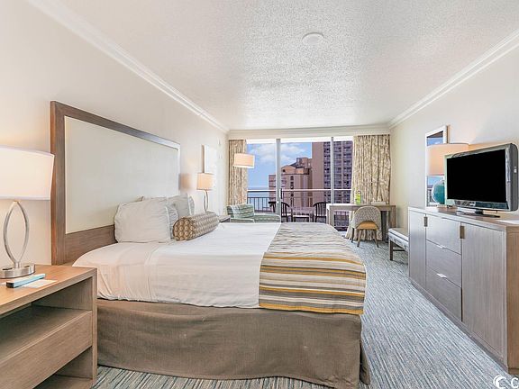 Charming condo in the prestigious Coral Beach Resort with an ocean view! This beautiful condo features a private balcony, modern furnishings and fixtures. Coral Beach Resort is known for their many amazing amenities including indoor and outdoor pools, lazy rivers, a mini waterpark for the kids, a gym, a business center, a laundry facility, onsite restaurants and bars, a convenience store, an arcade, and a bowling alley!!! You'll never want to leave the resort, but if you do you are located in the heart of Myrtle Beach and in close proximity to MarketCommon, Coastal Grand Mall, Myrtle Beach Airport, many mini golf courses, tons of shops, and plenty of restaurants in between. This is the opportunity you've been waiting for--whether it's an investment with strong rental income with very low HOA fees (investor tip: THIS HOA FEE INCLUDES THE ELECTRICITY IN THE UNIT), a second home to enjoy with the ones you love, or if you want to wake up and take a stroll on the beach! Contact your agent today for showings and more details!