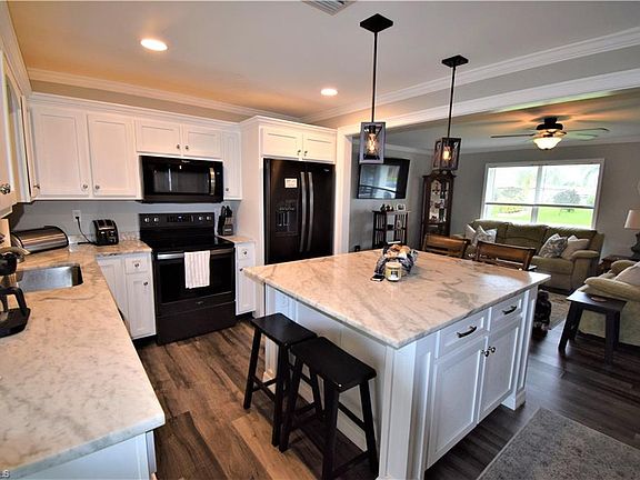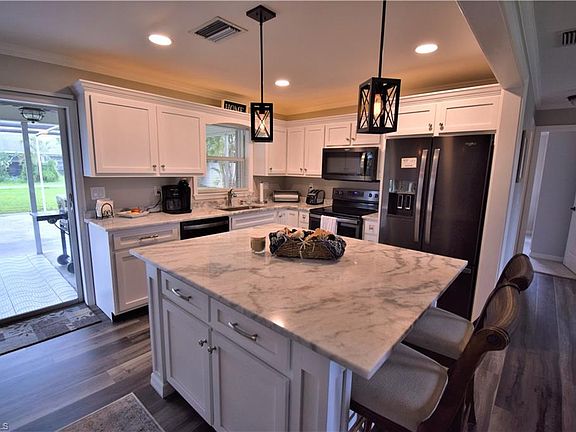 Beautiful Completely Updated 3 Bedroom 2 Bath Home with 2 Car Garage Located in a Desirable Quiet Family Neighborhood. Convenient Location Close to All Shopping and Services with Quick Access to Fort Myers and the Beaches. Great Room Floorplan with Crown Molding Throughout. New Custom Built Shaker Cabinets in Kitchen and Bathrooms with Soft Close Drawers and High End Granite Tops. Waterproof Vinyl Plank Flooring Throughout Living Area with New Carpet in Bedrooms. Huge Lanai and Screened Patio with Plenty of Room for a Pool! According Shutters on all Windows! Not in a Flood Zone!