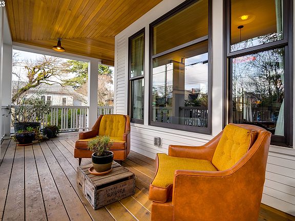 Custom renovated 1908 Modern Farmhouse. An artful blend of classic & modern offers inspiring spaces. Thoroughly updated with an eye toward sustainability, comfort, and fine craftsmanship. Full of natural light & perfect for indoor/outdoor living & entertaining with an open concept kitchen & french doors to the ample wrap-around porch. 3 bedrooms & full bath on the second floor, 3rd floor primary suite with bath, skylights. In the heart of Sellwood near park, coffee, food & boutiques. [Home Energy Score = 6. HES Report at https://rpt.greenbuildingregistry.com/hes/OR10205272]