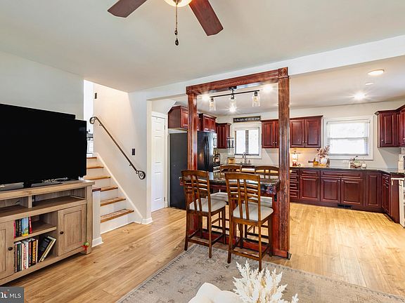 Discover this well maintained home in desirable Gloucester Township with easy access to deptford shopping areas and Philadelphia. Featuring an inviting front porch perfect for relaxation and enhanced curb appeal with mature trees and landscaping. Upon entering, you are greeted by a new front door leading into a bright living room adorned with new LVR flooring that seamlessly flows into the kitchen. The home boasts an abundance of natural light, a custom coat closet, and a kitchen equipped with cherry cabinetry, recessed lighting, granite countertops, black appliances, and a center island with seating for four. The lower level offers a spacious family room with open beams and custom built-ins, along with a bonus space, half bath, and laundry area. The second floor features two bedrooms sharing a beautifully designed bathroom with tile flooring, glass shower doors, and custom cabinetry for additional storage. A third bedroom is located on the upper level, providing ample storage and a full closet. Step into the fabulous sunroom , which offers access to an amazing fenced-in backyard complete with a fire pit area, dining space, and a natural gas BBQ grill—ideal for entertaining. Additionally, the basement includes a small workshop area, and there are two large sheds outside for all your storage needs. This property is a must-see!