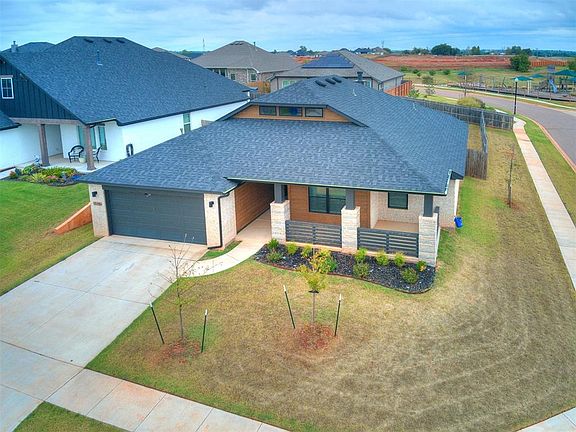 Welcome to this pristine gem of a home nestled in North Norman’s Red Canyon Ranch Neighborhood. Built in 2021, this practically brand new property commands a large corner lot and aims to charm from the start with its contemporary farmhouse design. As you step inside, you'll immediately notice the elegant wood grain tile that graces the main living spaces, setting a warm and inviting tone. The open floor plan seamlessly connects the living area, dining space, and kitchen, creating an ideal environment for both family gatherings and entertaining guests. This four-bedroom, two-bathroom home includes a dedicated study, providing the perfect space for remote work or a quiet retreat. The generous sized utility room, complete with a convenient mud bench, flows effortlessly into the two-car garage, which houses an in-ground storm shelter, ensuring peace of mind during Oklahoma's storm season. The well-appointed kitchen features stainless steel appliances, abundant counter space and storage options to the delight of any home chef. Enjoy the large and private backyard complete with a covered patio and outdoor fireplace setting the scene to comfortably dine al fresco or unwind by a cozy fire after a long day. The neighborhood includes walking trails, a fun playground, and refreshing splash pad to beat the Oklahoma summer heat. Located just off Tecumseh Rd, this home provides a short and convenient commute to OU, Tinker Air Force Base, and I-35. Do not miss your chance to make this exceptional property your new home. Schedule a showing today!