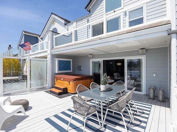 Experience resort-style living all year round in this magnificent waterfront home located on the Mariners Lagoon in the heart of the Peninsula. Step into luxury as you explore the exceptional design features of this property. The main level presents a gourmet kitchen equipped with top-of-the-line stainless steel appliances, perfect for culinary enthusiasts. Enjoy delightful meals at the kitchen counter or in the dining room, and unwind in the stylish living room featuring a gas fireplace. As you step onto the spacious deck with glass railings, be prepared to be mesmerized by the sweeping 180 degree wide water and mountain views that will take your breath away. Upstairs, the second level boasts three bedrooms and two baths, including a spacious primary suite that exudes sophistication with its vaulted ceilings, private balcony, and ample storage space, including walk-in closets and a finished attic. The lower level unveils the ultimate entertainer's dream.