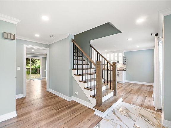 Spacious and beautifully updated 2-story home with private views backing to Braewood Park. This whole-house rehab offers modern comfort and timeless charm, featuring hardwood floors throughout the main level, large rooms, and an abundance of natural light from numerous windows. The fully rehabbed interior includes two cozy fireplaces and modern bathrooms that blend style and function seamlessly. The eat-in kitchen is a chef's dream with a breakfast bar island and direct access to the deck-perfect for morning coffee or evening meals. Just off the kitchen, the family room offers a warm and inviting space ideal for entertaining. A large formal dining room and living room provide ample space for gatherings and holidays. Upstairs, the expansive master suite includes a sitting room and a luxurious private bath with a jetted tub and separate shower. Additional bedrooms offer plenty of space for family or guests. The full finished basement expands your living area with flexible space to relax, entertain, or customize further to fit your needs. A practical mud room adds convenience, while the deep, shaded backyard-featuring both a deck and a patio-makes outdoor living a delight during warmer months. Don't miss this move-in-ready gem offering comfort, space, and a truly special setting right next to Braewood Park.