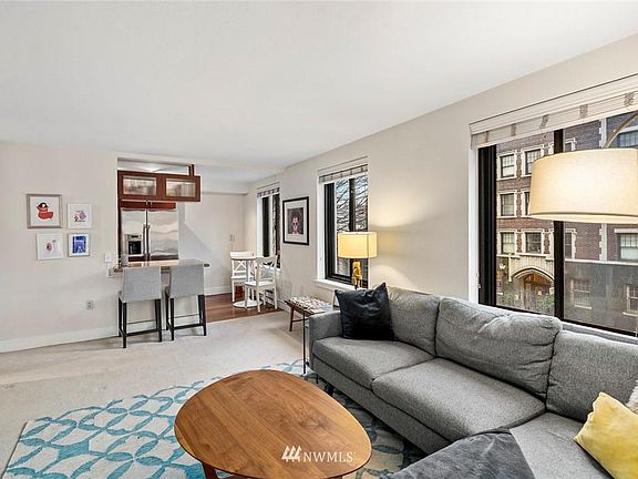 Quintessential mid-century, concrete & steel condominium building by renowned Space Needle architect John Graham. Located on tree-lined streets, this classic New York style 2-bed corner unit features lots of natural light, granite countertops, stainless steel appliances, one storage unit, one garage parking space and 98 Walk Score! Decatur was remodeled in 2007, pet friendly with NO RENTAL CAP. Newer plumbing. Don't miss the charming rooftop with BBQ & panoramic 360 city view. On-site manager. Lovely SE exposure in one of Seattle's best urban locations with all the doctors on "Medical Hill." Parking space and storage can be sub-let within the building.