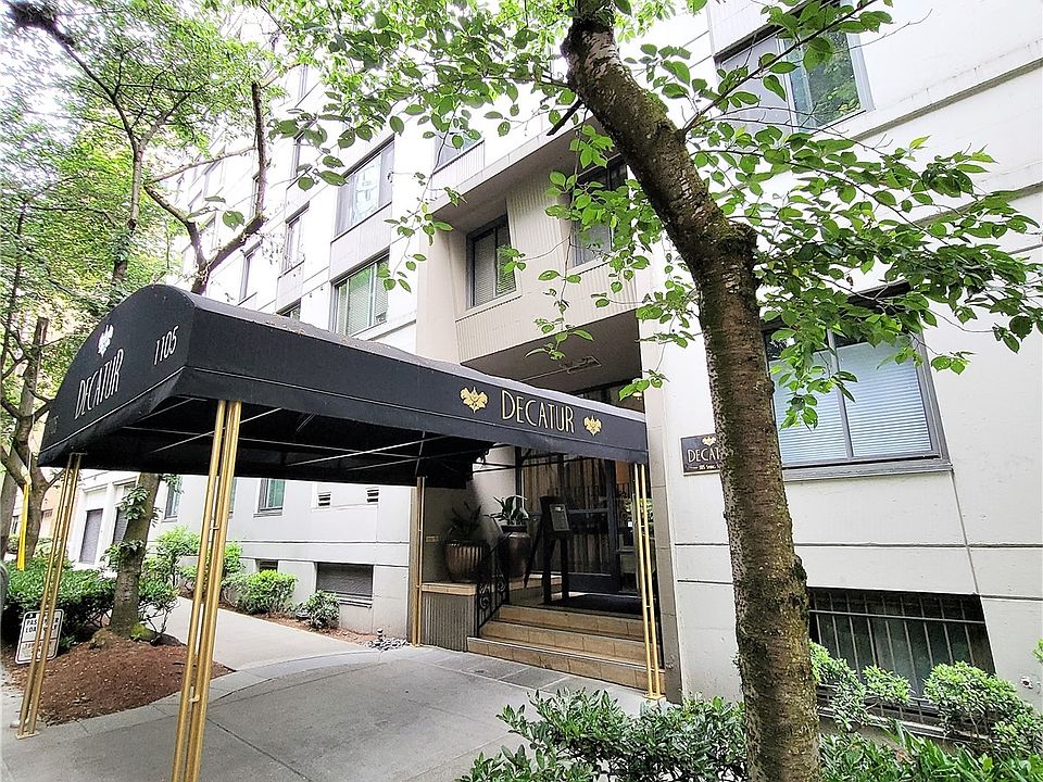 Welcome to the Decatur, designed by famed Space Needle architect, John Graham! Hard to find 2 bed 1 bath Corner View unit with city views and plentiful light. This home has new paints, modern kitchen and amenities, with breakfast bar, granite counters, large living room w/wall of windows. Full bath B/W subway tile and large closets with tons of storage. Incredibly well-run building w/full-time manager, secure and very pet friendly. Come enjoy the rooftop deck with mountain & water views. Best of all, this unit comes with 1 Secure Parking and storage unit. No Rental cap or Special Assessment. Located in a prime location, convenient access to Seattle's finest dining, shopping, entertainment and easy transit.