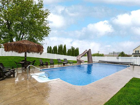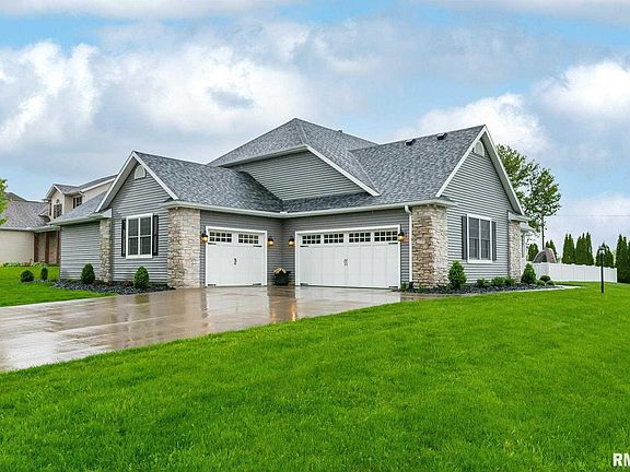 Stunning English styled story and a half home in the coveted Village of Cobbler's Knotch in Eldridge. This nicely laid out home has high end finishes throughout and will not last long! Luxury vinyl tile flooring, new carpet, and completely updated. Kitchen is finished in quartz countertops, tile backsplash and all new stainless appliances, with extra beverage cooler. This home is made for entertaining with a 3 season room off the main level, leading out to the private, fenced in back yard where you'll spend the summer in the 18x36 in ground pool! Complete with composite slide, outdoor speakers, pool bathroom and large pool deck area for furniture. With too many amenities to list here are just a few: 3rd garage / heated shop, mud room with built in cubbies, main floor laundry, vaulted great room, vinyl fence around back yard, DVR camera system, water softener, new pool liner and pump, all new paint throughout entire home, large safe, the list goes forever!