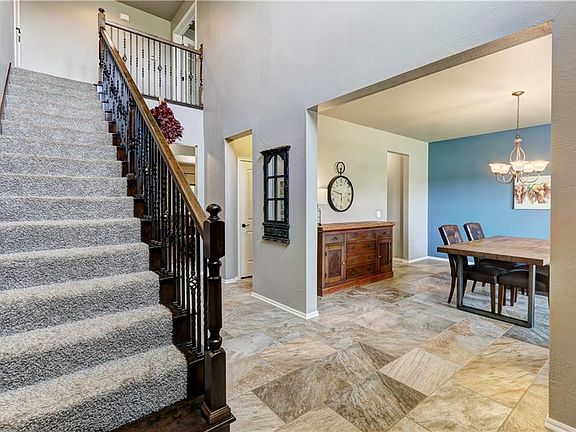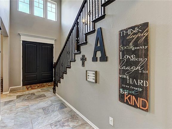 This gorgeous home in North Edmond features open spaces and upgraded finishes. The 5 bedroom house features a kitchen with tons of cabinet storage, an over-sized island, stainless steel appliances, granite countertops in the kitchen and bathrooms, brushed bronze hardware throughout, an over-sized master bedroom closet, a large jetted garden tub with stone surround in the master bath, and an upstairs gaming room/loft area. It doesn't stop there! The house has a 3 car garage, an over-sized storm shelter, water softener, a large covered back patio, a 2nd flagstone patio area with fire pit, and all built on a 1.37 acre corner lot entering a low traffic cul de sac. Located in the close-knit community of Stone Creek Canyon with active and welcoming families, a gated entrance, low HOA fees, and part of the Edmond school district. All of this 15 min away from downtown Edmond, and 10 min away from I-35.