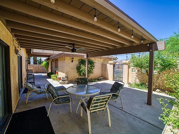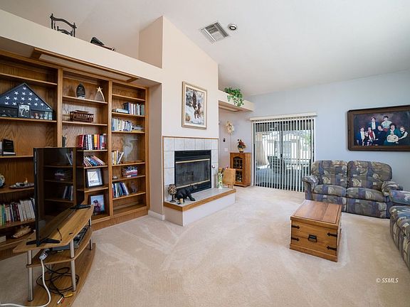 This four bedroom home located in a great northwest neighborhood! Fully landscaped with two great outdoor lighted patios to enjoy the wonderful desert ourtdoors! Kitchen with beautiful granite countertops, jenn-air stove top, kitcheaid microwave/convection oven plus regular over, touchless kitchen faucet and upgraded cabinets! Kitchen also had an island , built-in china cabinet, breakfast bar , nook area and skylights with shades! Living room boast of fireplace , built-in bookcases and lots of space! Formal dining, family room and large laundry room. All this on almost 1/4 acre with blookwall and wrought iron gates. Paid for solar! The three car garage is 782 sq ft .and there is RV parking too!
