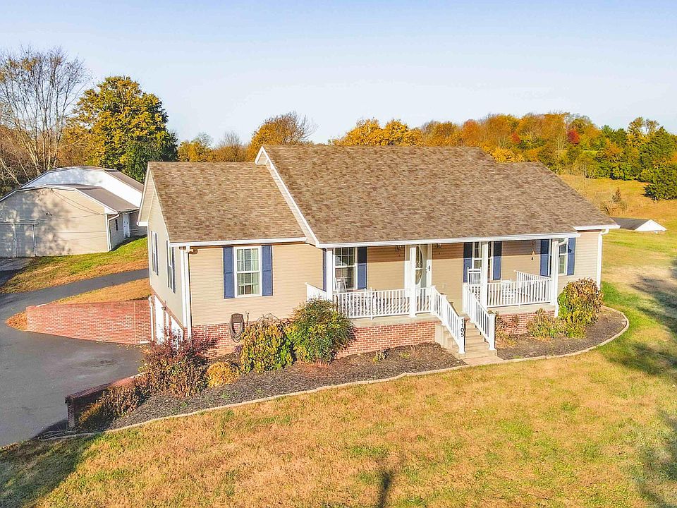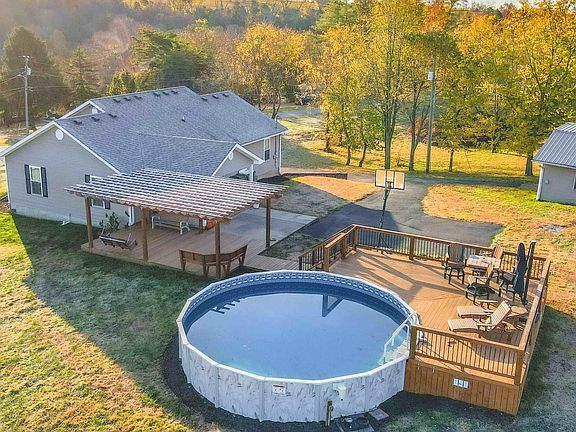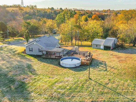 Country living just 5 mins to Main St! Conveniently located to the lake & Coffey's Marina & all town amenities! Nice country ranch home featuring 3 bedrooms, 2 full baths, fully applianced kitchen, separate dining room, large living room, beautiful wood flooring, primary bedroom w/walk-in closest & primary bath w/neutral tile, basement space is great for multi-purpose, 2 car garage. Detached hobby/storage building, covered back patio, above ground pool w/lots of deck space great for entertaining!