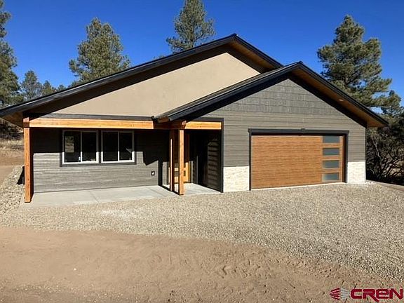Brand spanking new ranch style home; backing up to the BLM, allowing you extra acres to play in. You will also have to share this beautiful space with an abundance of wildlife; especially deer, elk and turkey. About the home: first, it has NO Stairs! It does have high efficiency, radiant in-floor heat throughout the home and in the garage as well. Gas fireplace, maintenance free exterior siding, amazing upgraded wood trim and tile showers. Also, solid core Knotty Alder interior doors, and a gorgeous Douglas Fir beam to add that rustic look. In addition, the countertops are quartz, the cabinetry is all solid wood, the flooring high quality waterproof vinyl plank and all the appliances are stainless steel. In addition, the home has been wired to accommodate your electric vehicle. Located in Pagosa Lakes gives you access to 4 private fishing lakes, a recreation center and a 27-hole golf course. Only 5 minutes from a hospital, shopping and restaurants. Expected completion date is November 15th.