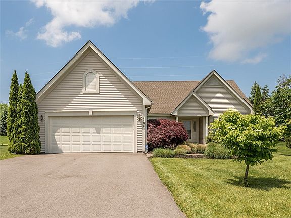 Stunning Patio home in wonderful Candlewood Park! The Park District is land maintained by the Town of Webster for the exclusive use of the residents of Candlewood Park. There are walking trails with access points throughout the subdivision. Open floor plan with cathedral ceilings in greatroom, eat in kitchen. Sliding door leads to the 3 season room with access to the private back yard. Current owner had the 128 sqft 3 season room built and is NOT included in the 1435 sqft of the house. Furnace and central A/C new in 2022. Minutes to the Village of Webster and the 104 Expressway. DELAYED NEGOTIATIONS due 6/4/24 at 6:00pm.
