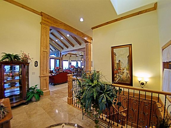Amazing luxury home has everything you need and more! 360 view with no neighbors behind, unique details throughout including extra tall heated garage, copper accents on exterior, hand-carved hardwood throughout interior, beam crossed ceiling, built in shelves and stone to ceiling fireplace, gorgeous over-sized travertine tiled entry, surround sound in theater room, and much much more! Wine cellar, custom bathrooms, exercise room, walk-in closets in all bedrooms. Beautiful master suite with digital shower and waterfall, surround sound, jetted tub with infinity heater, and stone fireplace. 9' wood doors and a kitchen you must see to believe! If you want luxury living this is it!