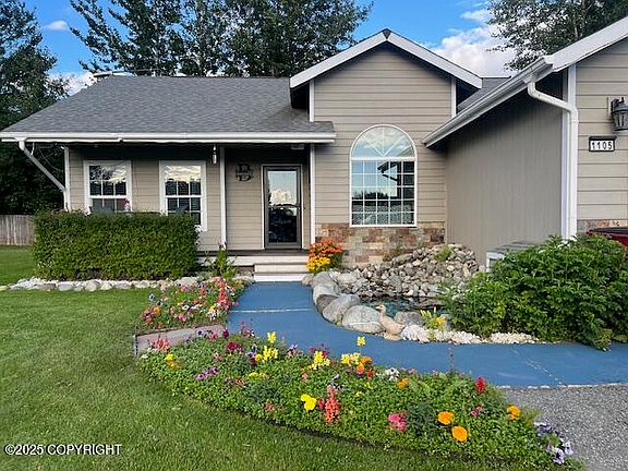 Fantastic ranch home in Palmer city limits close to schools, shopping, and city. Gorgeous, landscaped yard including a fountain feature w/ a fish pond and flowers. Vaulted ceilings in the open concept living/kitchen/dining areas. Bonus living room and/or office space. Primary suite with his/her closets as well as a separate soaking tub and walk in shower. Kitchen w/ stainless steel appliances.-New Hot Water Heater Installed 2025 -Home's furnishings can be negotiated to stay. -Quiet Cul-de-sac location -Well maintained home!