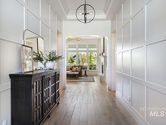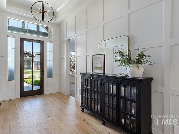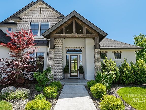 Elegant custom home on the waterfront in Mace River Ranch. Beautiful entry with paneled walls leads to a gorgeous great room with a decorative vaulted ceiling, fireplace and water views from the large windows. The spacious kitchen is well-equipped with a breakfast bar, SS Thermador Pro appliances, butler's pantry with sink and a separate, large walk-in pantry. This flexible floor plan is perfectly adaptable to your needs. The main level features a primary master bedroom with an attached sitting room, stunning bathroom and large closet, as well as a second master bedroom with water views, WIC and an en suite bath. In addition there are two other rooms with large closets that could be used as a bedroom, an office, a music room, etc., - whatever you desire! The upper floor has two more bedrooms and a separate bonus room wired for multi-media. This home also features epoxy floors, utility sink, vent and gas heating in the oversized 3-car garage.