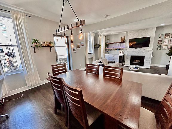 Three bed, two bath. No fee. Showing Sunday 3/9 from 12-3pm. Located in a charming walk-up building, this spacious 1,500 square-foot apartment boasts high-end amenities, including new hardwood floors, marble countertops, a gas fireplace, wet bar with custom oak shelving and wine fridge, master bathroom with double walk-in shower and double vanity, in-unit washer/dryer, full-home smart lighting, new stainless steel kitchen appliances, ample storage space (8 closets), and a shared outdoor space with a gas and charcoal grill. Prime location in uptown Hoboken. Two blocks from the water, and a few steps away from some of Hoboken's best restaurants, including Augustino's and Elysian Cafe. Easy transport into NYC, located within 1 block of the 126 bus stop, and less than 5 minutes walking distance from the ferry. Owner pays for water and trash collection. Renter responsible for internet/cable, electric, and gas. No smoking or pets. Minimum 1-year lease duration.