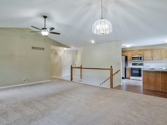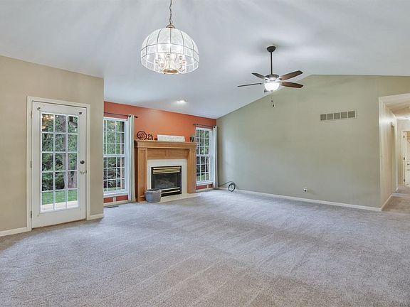 Beautiful wooded setting for this 4 bedroom, 3 bath ranch in Covington Greens. Shows like new construction. Certainly move in ready with new flooring and paint throughout. Over 1500 square feet on the main floor. Large living room with vaulted ceilings and fireplace. Kitchen with eating bar, pantry and all appliances included. Laundry has option of main floor or basement. Master suite includes full bath, vaulted ceilings, beautiful arched window and more then enough room for king bed and dressers! Built ins. Basement with large rec room, big windows for natural light, full bath and 4th bedroom. Exterior recently painted. Sprinkler system. Location with easy access to public golf course, YMCA, hospital, highway, grocery and more!