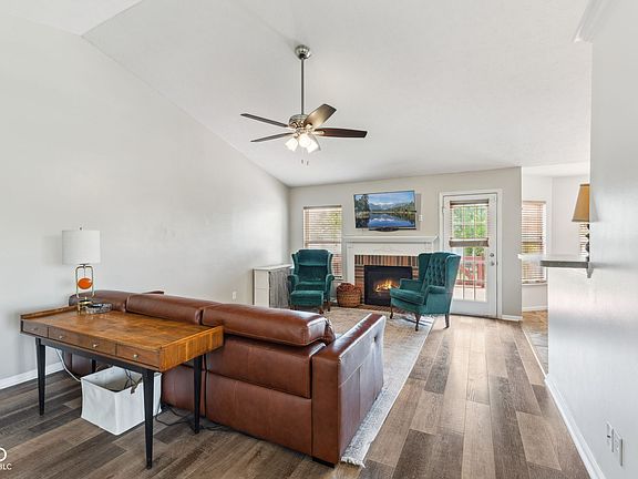 Located in the beautiful Lake Ridge neighborhood is this well-maintained 4 bedroom, 3 full bathroom brick front home! Step inside to high traffic laminate flooring, gorgeous blinds, and a vaulted ceiling. The dining area features custom built in bookshelves with an electric fireplace. Culinary enthusiasts will enjoy the ample cabinetry, durable ceramic tile flooring and appliances that stay! A second fireplace provides comfort in the living room. The cozy breakfast nook has a beautiful view of the large deck and backyard. The primary bedroom includes its own, private en-suite bathroom where you can enjoy a garden tub and walk in closet. Enjoy the convenience of having a main level laundry room! Head downstairs to the almost fully finished basement that could be an entertainment area, extra storage space, office, kids play area - the possibilities are truly endless! The dehumidifier and radon system both stay, allowing peace of mind. A generously sized bedroom also offers its own private bathroom which showcases gorgeous tile flooring and full shower. Easily entertain friends and family either in the basement, or fully fenced backyard. The HOA includes a community park, pool and walking trails. With short drives to parks, shopping and dining, and situated in the Brownsburg school district, this home offers flexibility & convenience for its new owners!