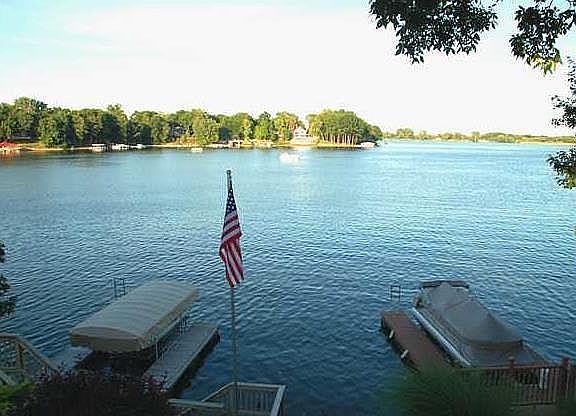 Outstanding view quiet idle zone on Morse Lake! Updated throughout. Remodeled kitchen has custom cabinets with solid surface countertops, stainless steel appliances and washer/dryer stay. Great room with new HW floors open to dining area that overlooks lake. Main level master suite plus office offers new bathroom with soaking tub/full walk-in shower, granite counters with double sinks. Large family room w/wet bar in walk-out basement. New upper deck. U shaped dock with new canopy. 3 car garage.
