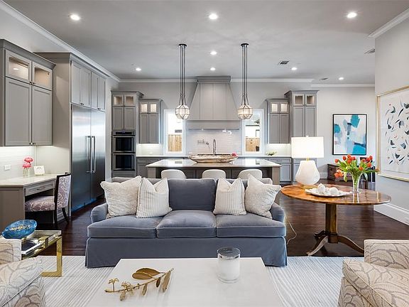 Stunning transitional built in 2016 set on an approximate half-acre lot with AquaTerra pool, spa, outdoor living center, 3-car garage and gated motor court. Enter through the double glass doors to the two-story foyer flanked by the formal dining and library. Great room with fireplace, built-ins, and wall of windows overlooks the backyard, entertaining area, and is open to the breakfast area and spacious island kitchen with quartzite counter tops. The well-equipped kitchen features Thermador appliances, gas range, built-in refrigerator, and an abundance of storage. Downstairs primary suite boasts an elegant spa-like bath and generous walk-in closet. Game room with bar and a private guest suite are also located on the first level. Three additional ensuite bedrooms are on the second level. This home offers an incredible opportunity to be in one of the most desirable neighborhoods in the Preston Hollow area located near Dallas' best private schools and walking distance to Northaven Trail. 2022-11-11
