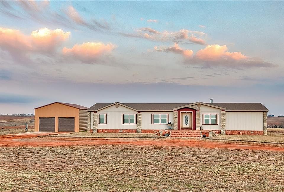 I FOUND YOUR COUNTRY HOME ON 5 ACRES! 4 Bedroom 2 Bath Home W/ WORKSHOP. Split bedroom floorplan features a luxurious master suite . Master Bath w/ double sinks, jetted tub and separate shower. The walk-in master closet is ENORMOUS with plenty of storgage solutions. You'll find a spacious kichen w/ extra cabinet space and bar seating. Open concept floorplan from kitchen to living room where you'll find a wood burning fireplace. Don't miss this home located just outiside of Elk City.