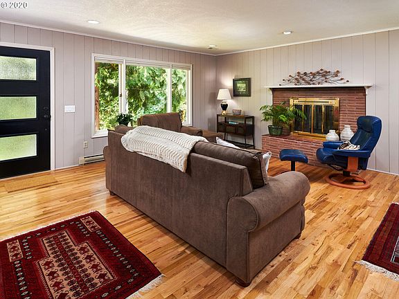 This Mid Century Day-Ranch sits on a BEAUTIFUL Half Acre Lot Certified by the PDX Audubon Society as a Backyard Habitat. Inside the home Natural Light throughout each living space with Large Picture Windows. The Living Room and Dining Room are centered by a Double-Sided, Brick Fireplace. Turn the corner and you will find a Spacious Remodeled Kitchen and access to an Entertainers Dream Deck. Downstairs is setup perfectly with a Family room, Rec room, Bedroom and Bath.