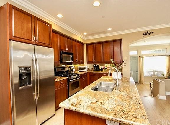 GORGEOUS LOS ALAMITOS TOWNHOUSE - This spacious (1,709 sf), 3BR/2.5BA home, built in 2004, shows like a model, and you'll be captivated the moment you walk through the 8' front door. The end-unit location (with windows on three sides), combined with its open-concept floor plan, creates an idyllic light-filled living area that is notably enhanced by its 9' & 10' ceilings. The kitchen boasts granite countertops, cherry cabinetry, and stainless steel appliances (including gas range & microwave vent). Additional features: wood-laminate & travertine flooring, dual-pane/vinyl-frame windows, crown moulding, recessed lighting, skylights, ceiling fans, 6-panel interior doors and a newer Rheem air conditioner (July 2019). The Master Suite offers a large bedroom with vaulted ceiling, and a bath outfitted with both a roomy shower and a jetted tub, as well as a walk-in closet with built-ins. Also note the finished two-car garage and the oversized laundry room (with sink and plenty of extra room for that 2nd refrigerator). And last, but certainly not least, take full advantage of your access to schools of the award-winning Los Alamitos Unified School District. This one's a must-see!