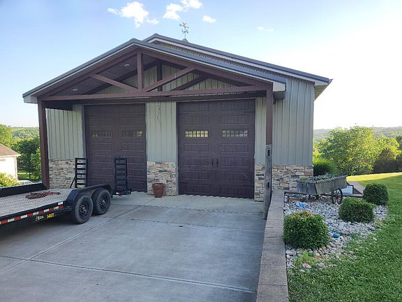 Welcome to your dream home nestled on 1.98 acres of picturesque countryside with easy access to the AA Highway. This custom-built brick ranch offers luxurious living space, featuring 4 bedrooms, 3 full bathrooms, and 1 half bath. Entertain guests on the gorgeous deck overlooking stunning views of the surrounding landscape. Attached 2-car garage and additional garage provides ample space for vehicles and storage. Additionally, the property boasts a large detached garage (36'x40'x13'), offering even more storage options and versatility. This detached garage is fully insulated and heated, ensuring comfort year-round. Equipped with a bathroom, it's perfect for any project or hobby. The interior features floor-to-ceiling metal finish, combining durability with a sleek aesthetic. Internet connectivity and surround sound speakers installed, this space is not only functional but also offers entertainment possibilities, making it an ideal workshop, or recreational area. Don't miss this opportunity to experience country living at its finest while still enjoying the convenience of nearby amenities.