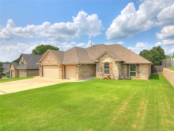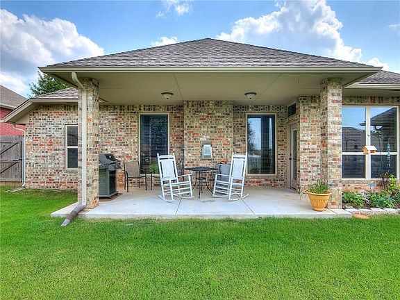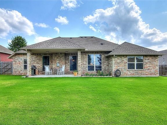 Immaculately kept home boasts granite on all counter surfaces, SS appliances, walk-in pantry, wood blinds, and ample storage throughout. Gorgeous built-ins and wood floors in office. Master bath features whirlpool tub, wrap around shower, & His and Hers furniture-style vanities. Whole house guttering, energy efficient low-E windows, covered patio, shade trees, sprinkler system, and in-ground storm shelter make this a Must See Home!