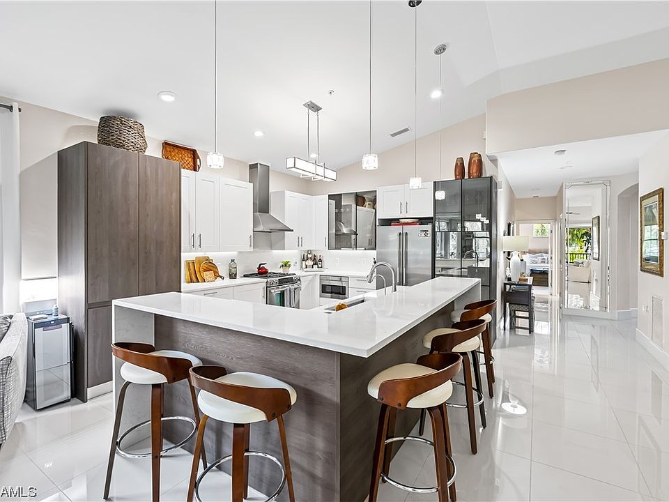Nestled in the highly sought-after community Mariposa in Gulf Harbour Yacht & Country Club, this beautifully remodeled unit offers a relaxing private retreat. This spacious TOP FLOOR unit features 3 bedrooms plus den and 2 bathrooms, providing ample space for comfortable living. The well-appointed kitchen is perfect for culinary enthusiasts, with its modern appliances, gas stove, upgraded deep cabinetry with custom pullouts, and well-designed glass pocket door bar. This kitchen offers many other upgrades like reverse osmosis that was also connected through the ice machine.