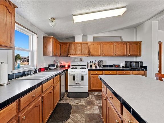 Listed by Dorcie Dardis 605-645-1234 and Stacey Burke 605-639-1249, Dorcie Real Estate. Charming 3-bed, 2-bath mobile home featuring an open kitchen, dining area, and cozy living room with a wood-burning fireplace. The spacious master bedroom boasts a luxurious bathroom with a tub, double sink, and walk-in closet. Additional highlights include two bedrooms, a second bathroom with a tub-shower combo, and a versatile den/study nook. Outside, enjoy an open wood patio, ample space on a large lot to enjoy the beautiful sunrise and sunset views. Bring your horses! Property also features a large detached two car garage.