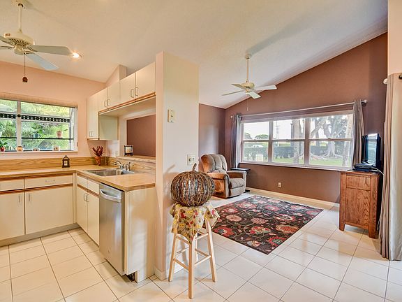 SEE THIS STUNNING HOME! THE RHONDA SCOTT TEAM PRESENTS THIS NEW LISTING. FOR GATE ENTRY, PLEASE TEXT 561-212-4164...Enter this 2 Bedroom, 2 Bath, 1 Car Garage Home through an Impressive Double Door Entrance into a Spacious Floor plan with Vaulted Ceilings. Absolutely an Immaculate and Well Cared for Home, with Stainless Steel Appliances, plus an inside Laundry room with Washer, Dryer and Hot Water Heater, just 2013 or newer. This home really has it all, from Accordian Shutters, to a spectacular corner location with added natural lighting, and quick walking distance to the Club House and Pool. Air Conditioner updated in 2010 Serviced 2 Times a year, with U/V Light Added in 2016. Roof Believed to Be Replaced in 2009. Windows covered with Hunter Douglas Privacy Screens and Solera Soft Shades. Try your Green Thumb in the Garden Window, Relax in your Private Screened Patio, and Enjoy all this Community has to Offer. Active Club House, Pool, Tennis, Fitness room and more.