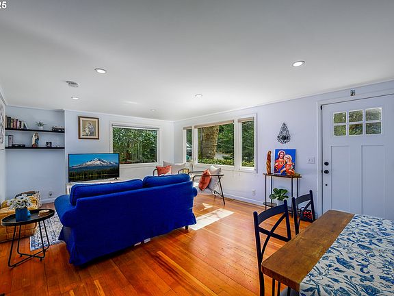 OFFER ACCEPTED-OPEN HOUSES CANCELED. Nestled in the sought-after Crestwood neighborhood, and just minutes from the heart of Tigard, this cozy bungalow offers a perfect blend of modern updates and timeless charm. Located on a quiet, private street, this home sits on a beautiful 5000 sqft corner lot, providing a blend of convenience and tranquility. Upon entering, you are greeted by an airy living room featuring original hardwood floors. Updated vinyl windows offer an abundance of natural light, bathing the home in southern exposure. The floor plan flows seamlessly from the living room to a dining area and into a highly functional kitchen. The kitchen features ample counter space, sleek stainless steel appliances, an eat-in bar, and plenty of cabinetry, while the tile floors lead you to a built-in pantry and a delightful coffee bar nook. The spacious primary bedroom offers hardwood floors and is filled with natural light, creating a peaceful retreat. The second bedroom also showcases hardwood floors and provides easy access to an updated bathroom, complete with a quartz vanity and a tiled bathtub/shower combo. Upstairs, you’ll find a generously sized loft that provides a perfect space for a private living area or office. Outside, a covered porch invites you into a fully fenced, expansive backyard, featuring a parking pad with hookups for an RV. Enjoy sweeping views of trees and the city, making for incredible sunsets right in your own backyard — an ideal setting for gardening, entertaining, or simply relaxing. Additional features include a partial basement for extra storage, laundry accommodations, and an updated HVAC system, sewer line, electrical panel, and newer roof. Despite its proximity to I5 and Hwy 99, the home benefits from a large sound barrier, ensuring a peaceful and quiet atmosphere. With excellent schools, shopping, and entertainment just a stone’s throw away, this charming bungalow is a true gem. [Home Energy Score = 3. HES Report at https://rpt.greenbuildingregistry.com/hes/OR10187730]